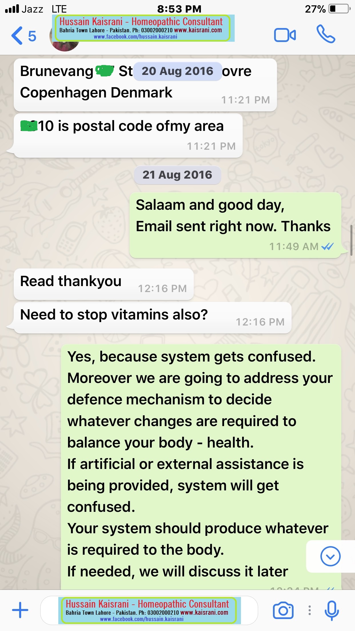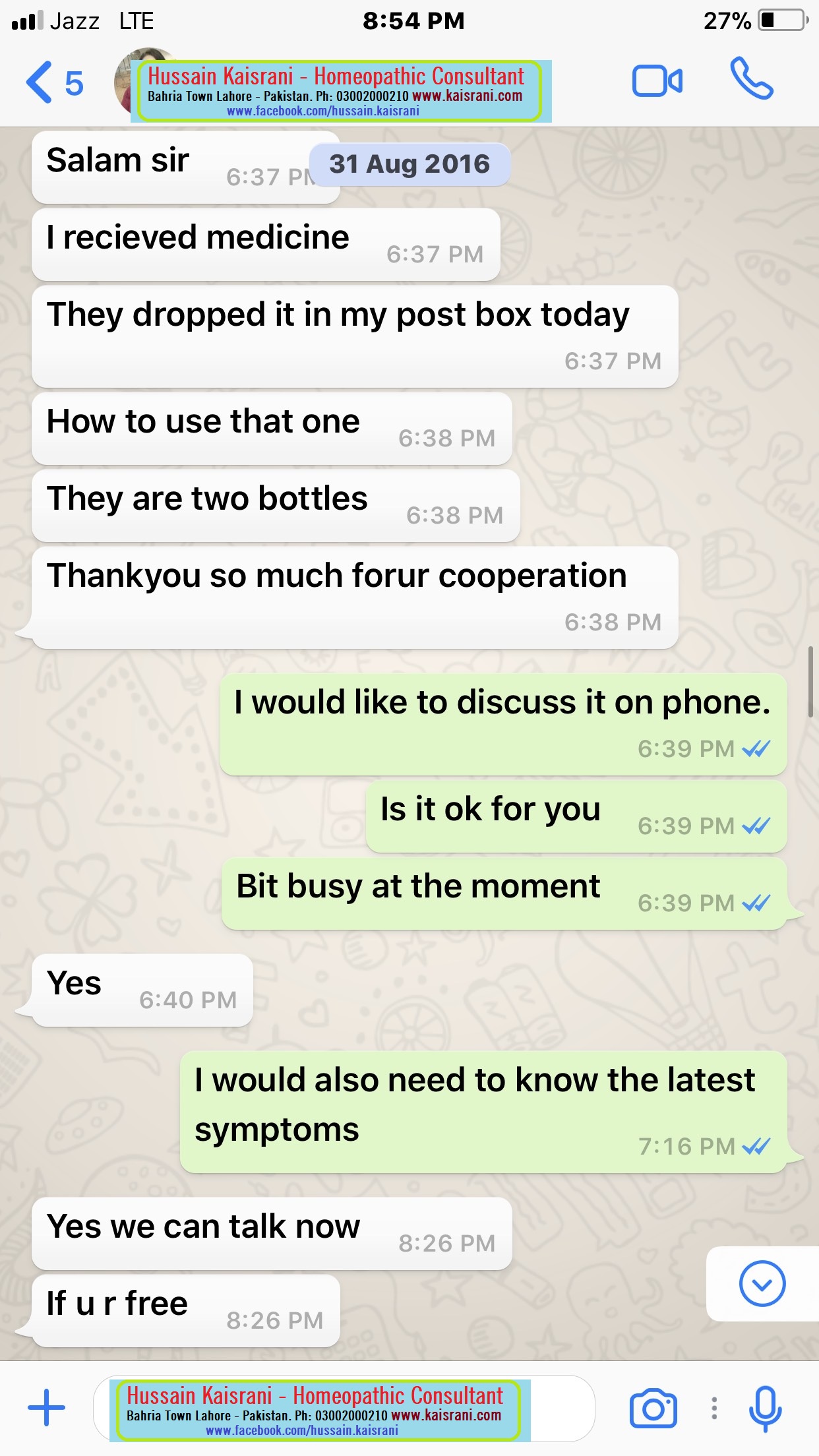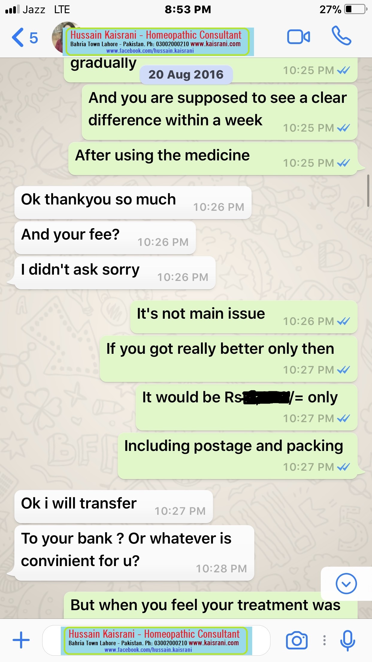 My experience of Online Homeopathic Treatment by Hussain Kaisrani – A Review (Raina Zia)