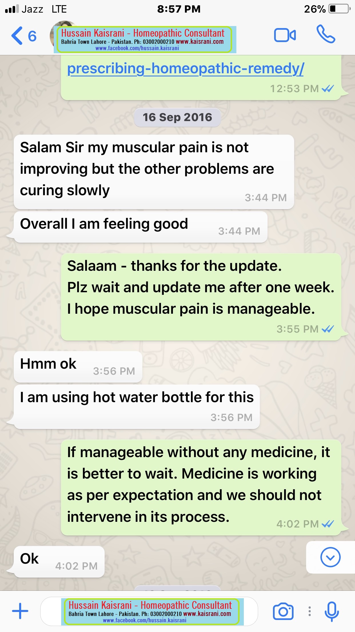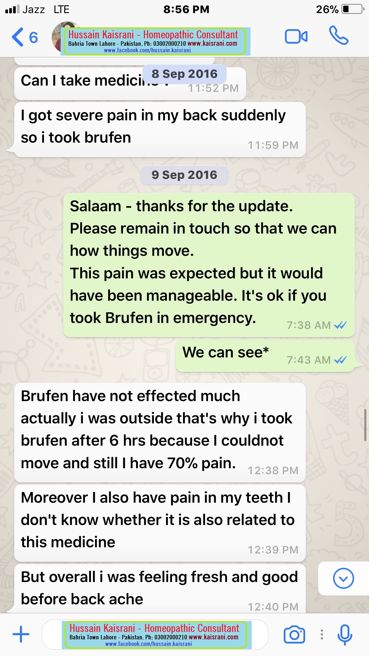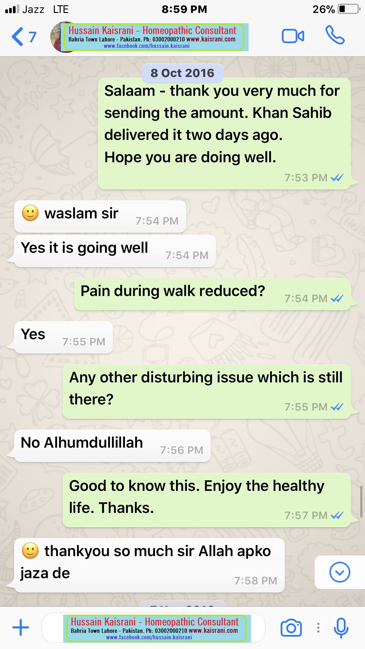 Feedback of Second Month (June 2017) of Treatment by Homeopathic Doctor Hussain Kaisrani (Dr FA – The Young Medical Doctor)